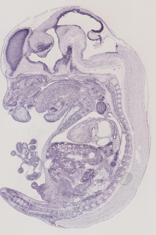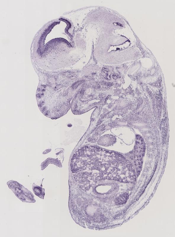 Reference: J:122989 Visel A, et al., GenePaint.org: an atlas of gene expression patterns in the mouse embryo. Nucleic Acids Res. 2004 Jan 1;32(Database issue):D552-6