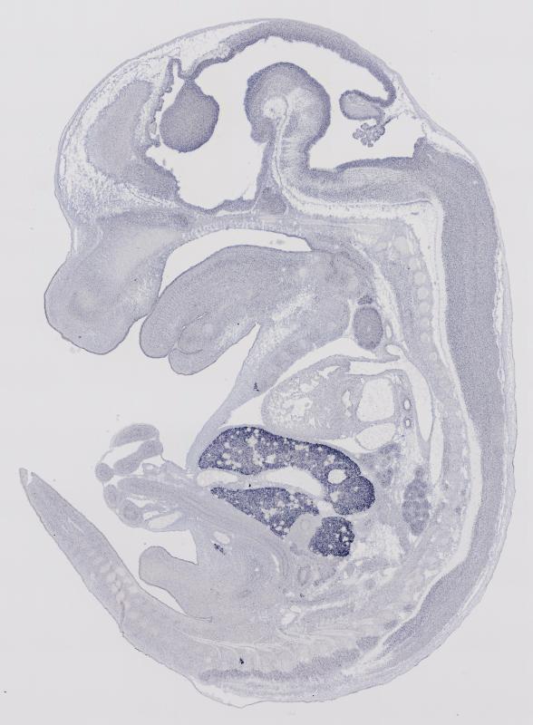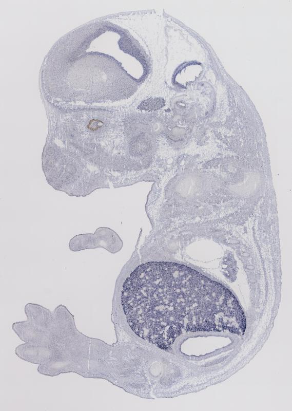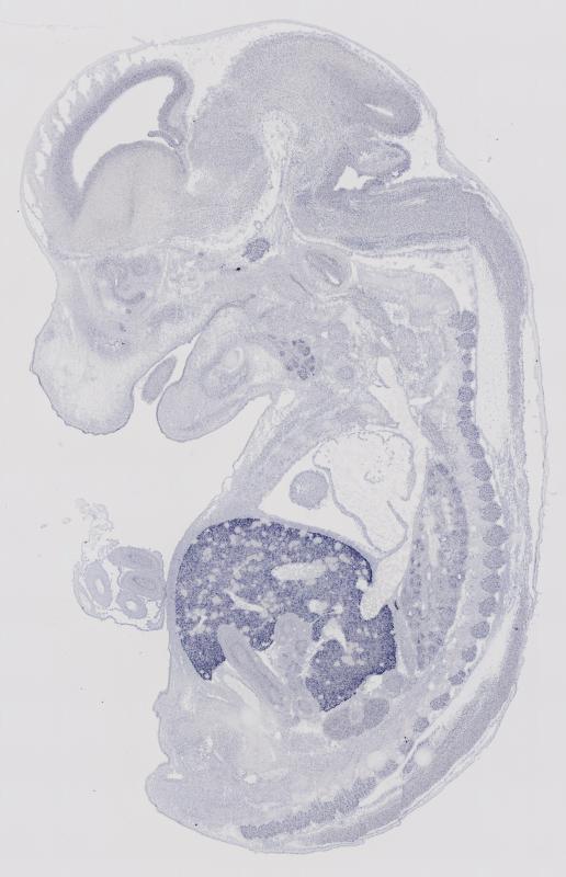 Reference: J:122989 Visel A, et al., GenePaint.org: an atlas of gene expression patterns in the mouse embryo. Nucleic Acids Res. 2004 Jan 1;32(Database issue):D552-6