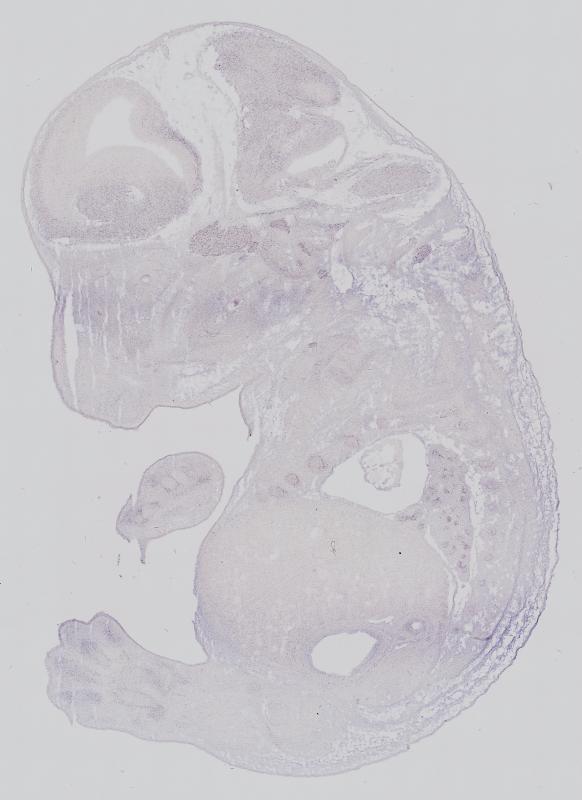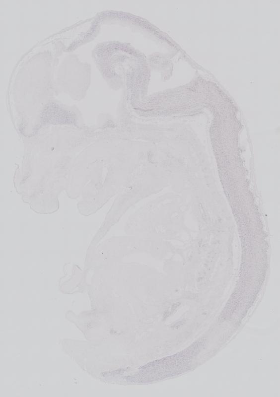 Reference: J:122989 Visel A, et al., GenePaint.org: an atlas of gene expression patterns in the mouse embryo. Nucleic Acids Res. 2004 Jan 1;32(Database issue):D552-6