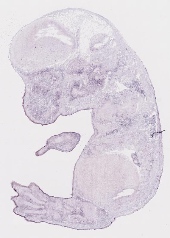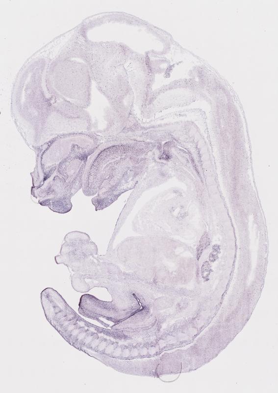 Reference: J:122989 Visel A, et al., GenePaint.org: an atlas of gene expression patterns in the mouse embryo. Nucleic Acids Res. 2004 Jan 1;32(Database issue):D552-6