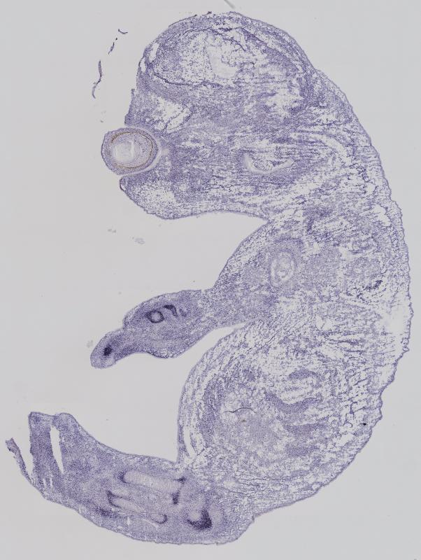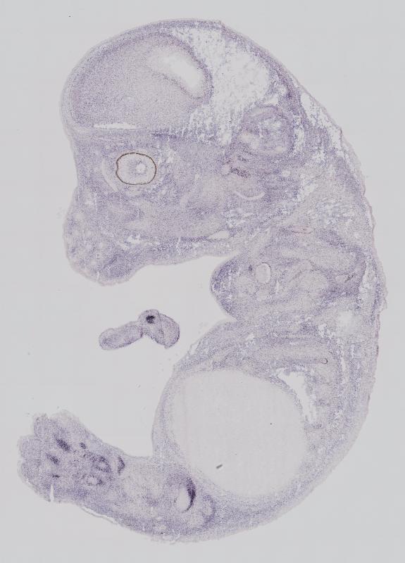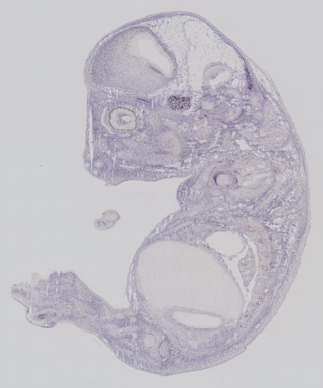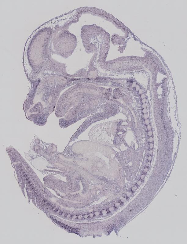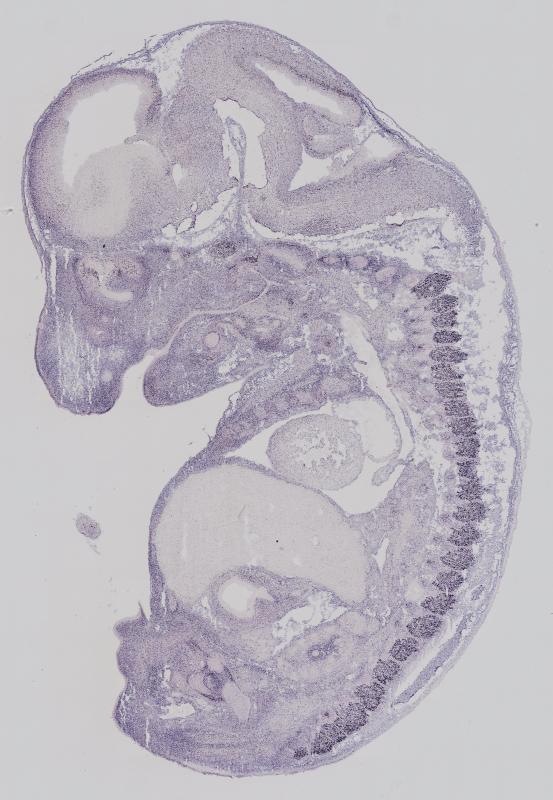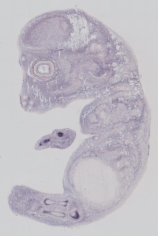 Reference: J:122989 Visel A, et al., GenePaint.org: an atlas of gene expression patterns in the mouse embryo. Nucleic Acids Res. 2004 Jan 1;32(Database issue):D552-6