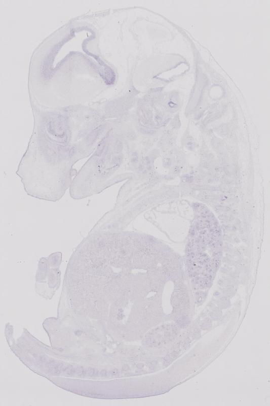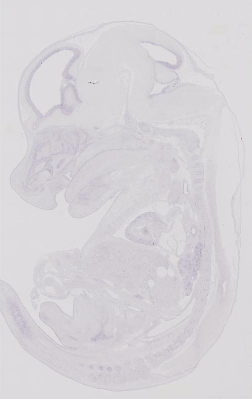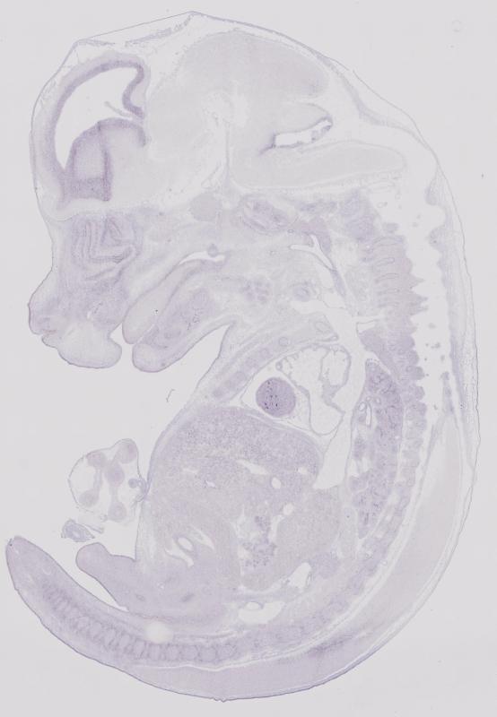 Reference: J:122989 Visel A, et al., GenePaint.org: an atlas of gene expression patterns in the mouse embryo. Nucleic Acids Res. 2004 Jan 1;32(Database issue):D552-6