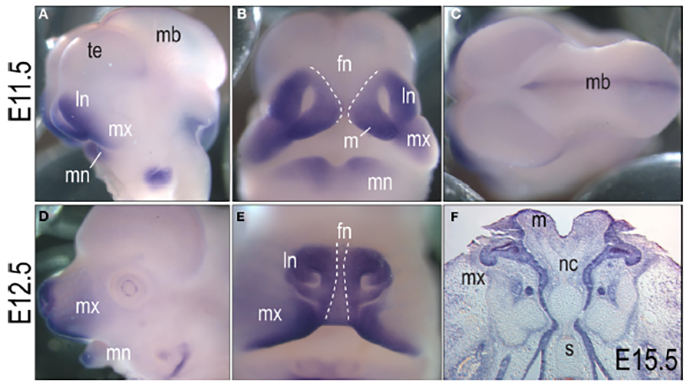TS20: maxillary process Present Regionally restricted 3D Expression is present at the growing edges.