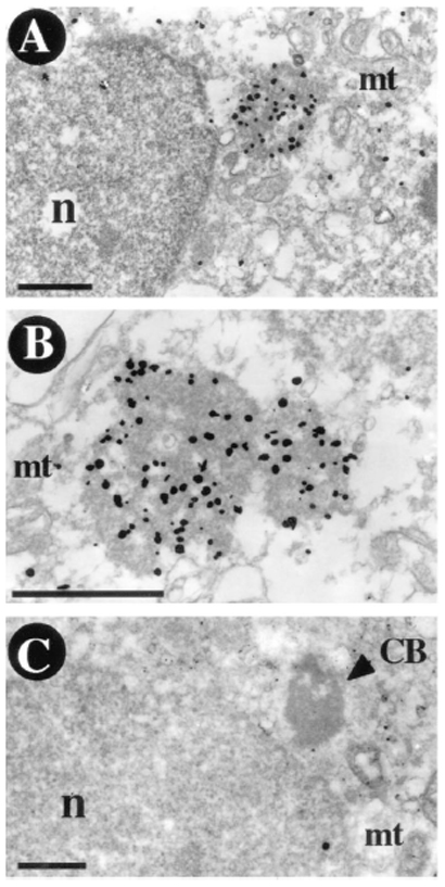 Assay notes: Immuno-electron microscopic analysis. Fixative: PLP solution (2% paraformaldehyde, 15% picric acid, 0.1% sodium cacodylate, pH 7.4), postfixed in 0.1% osmium tetroxide.