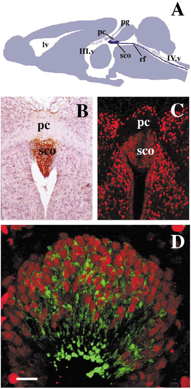 TS26: midbrain Present Regionally restricted 1D Expression was in the subcommissural organ.