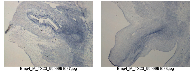 Note: This specimen was generated and annotated by the lab of Cathy Mendelsohn, Columbia University. Labeling was visualized using NBT/BCIP.