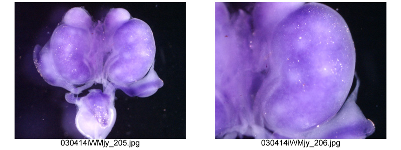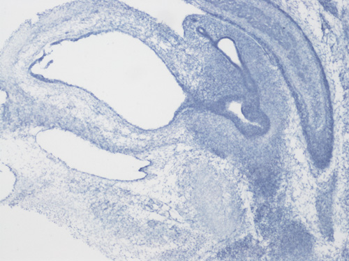 Note: This specimen was generated and annotated by the lab of Cathy Mendelsohn, Columbia University. Labeling was visualized using NBT/BCIP.