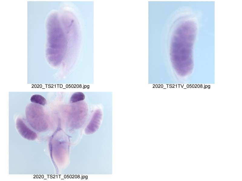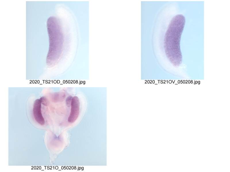 Note: This specimen was generated and annotated by the lab of Melissa H. Little, Murdoch Children's Research Institute. Labeling was visualized using NBT/BCIP. Male and female were examined; only the female is shown. Annotators reported the male expression pattern in the metanephros is identical to female.