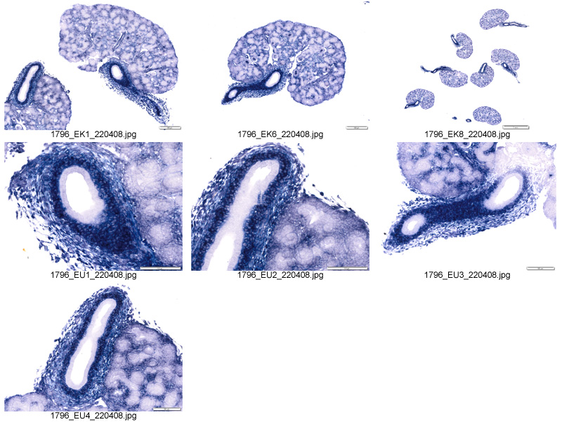 Note: This specimen was generated and annotated by the lab of Melissa H. Little, Murdoch Children's Research Institute. Labeling was visualized using NBT/BCIP. Male and female were examined; only the female is shown. Annotators reported the male expression pattern in the urogenital sinus is identical to female.