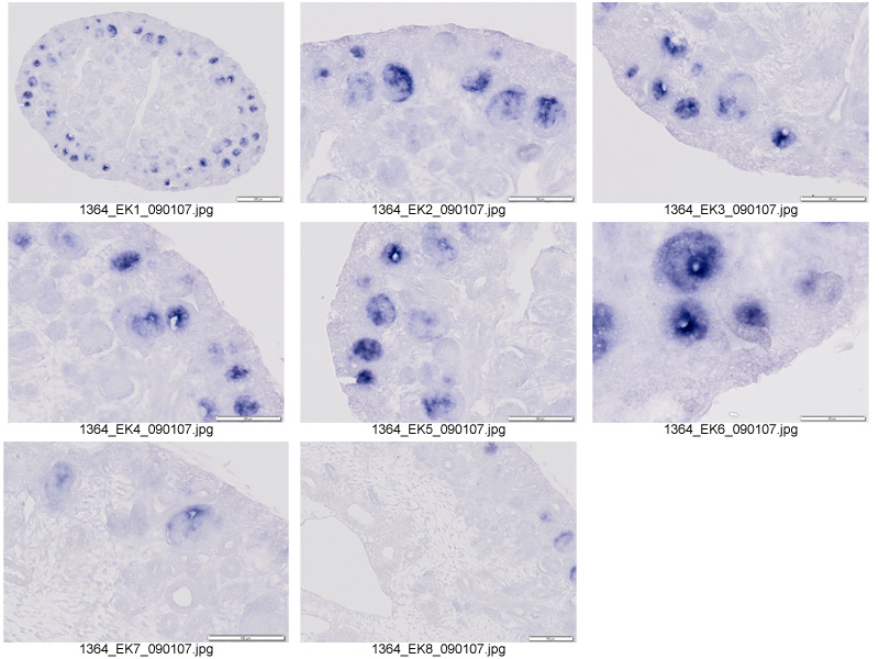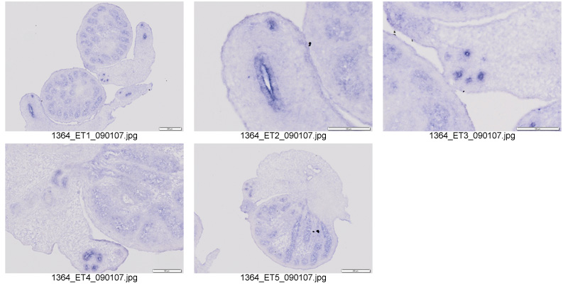 Note: This specimen was generated and annotated by the lab of Melissa H. Little, Murdoch Children's Research Institute. Labeling was visualized using NBT/BCIP. Male and female were examined; only the male is shown. Annotators reported the female expression pattern in the metanephros is identical to male.