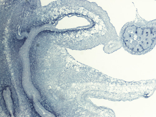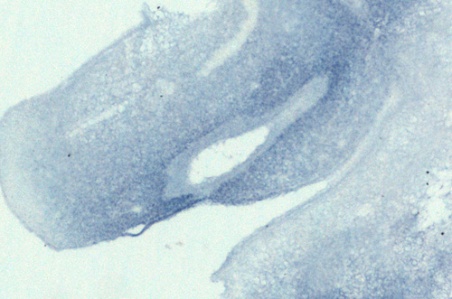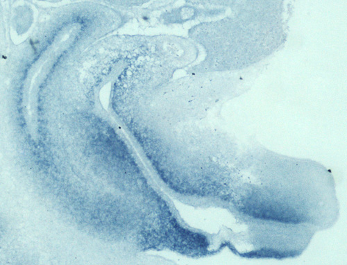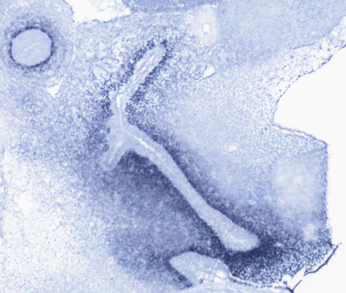 Note: This specimen was generated and annotated by the lab of Cathy Mendelsohn, Columbia University. Labeling was visualized using NBT/BCIP.