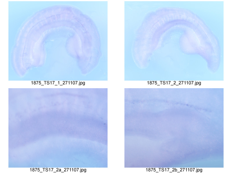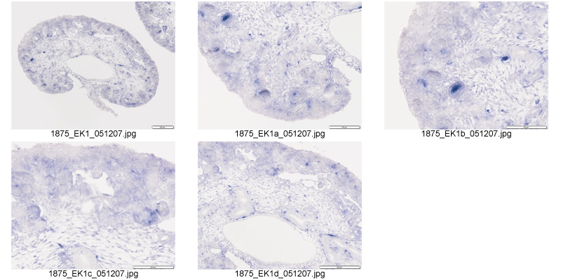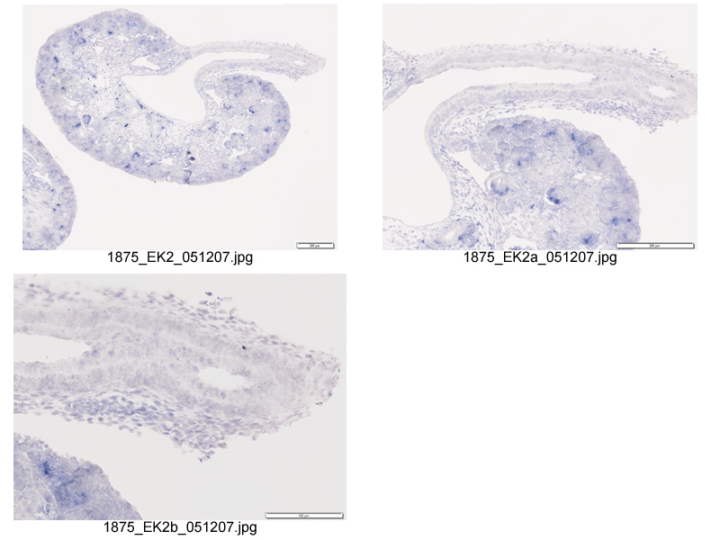Note: This specimen was generated and annotated by the lab of Melissa H. Little, Murdoch Children's Research Institute. Labeling was visualized using NBT/BCIP. Male and female were examined; only the female is shown. Annotators reported the male expression pattern in the metanephros is identical to female.