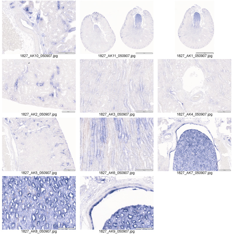 Note: This specimen was generated and annotated by the lab of Melissa H. Little, Murdoch Children's Research Institute. Labeling was visualized using NBT/BCIP. Male and female were examined; only the male is shown. Annotators reported the male expression pattern in the metanephros is identical to female.