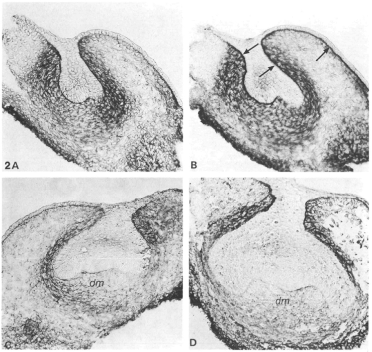 Staining in the dental papilla was less than in the surrounding mesenchyme.