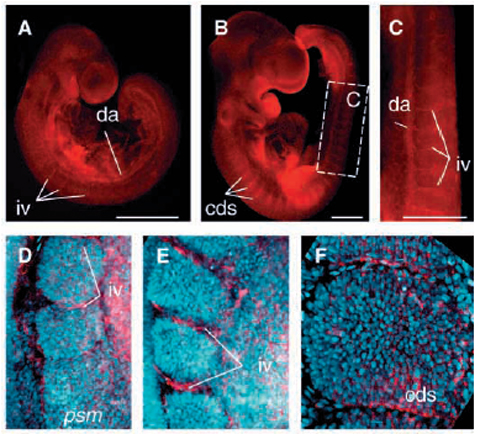 Expression intersomitic vessels growing between the most caudal somites.