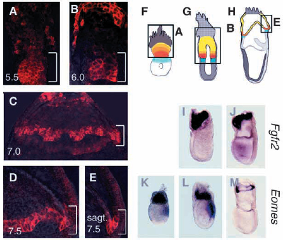 Expression domain in the extraembryonic ectoderm decreased in intensity and cellular depth, and was barely detectable after 8.0 dpc.
