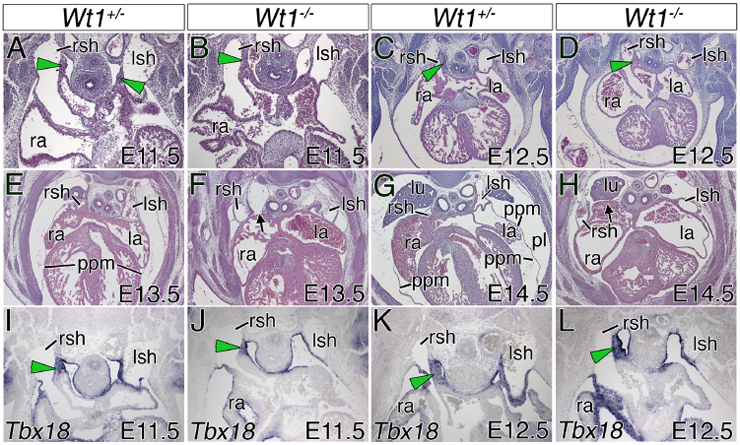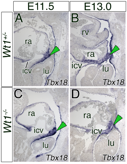 Norden J, et al., Partial absence of pleuropericardial membranes in Tbx18- and Wt1-deficient mice. PLoS One. 2012;7(9):e45100