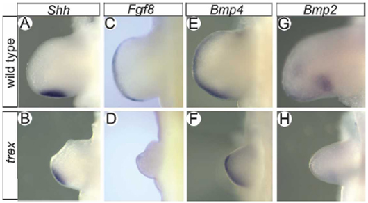 TS17: forelimb bud apical ectodermal ridge Weak Regionally restricted 6D Expression dramatically reduced relative to wild type.