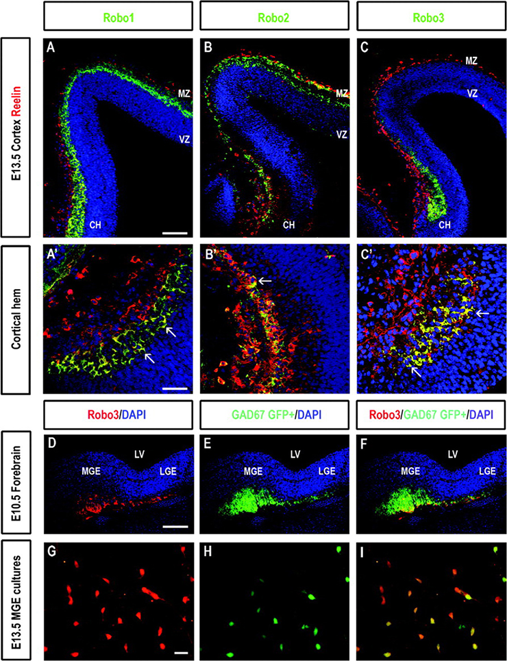 Note: Double labeled: green - Robo2; red - Reln (assay MGI:5752750).
