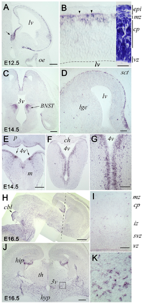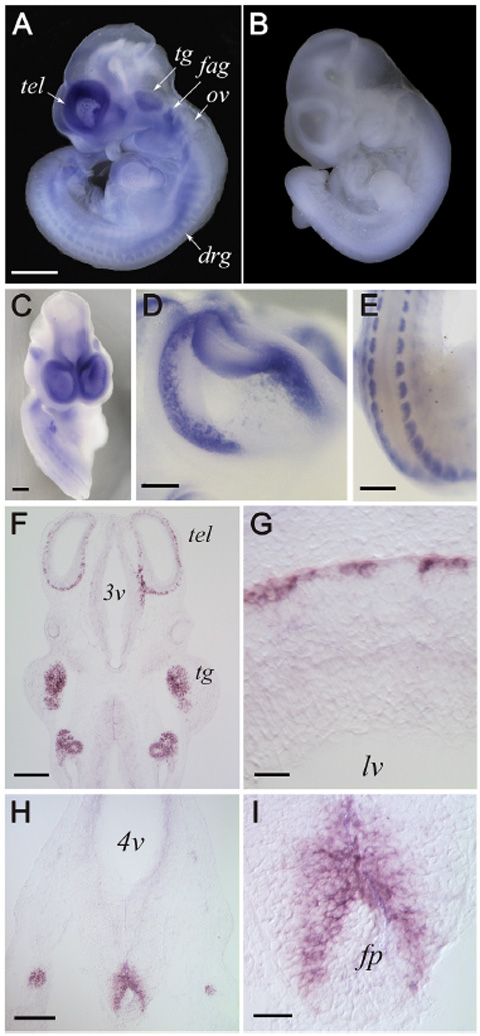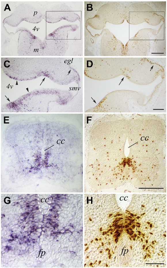 TS22: medulla oblongata ventricular layer Present Regionally restricted 4G , 4F Expression is ventral.
