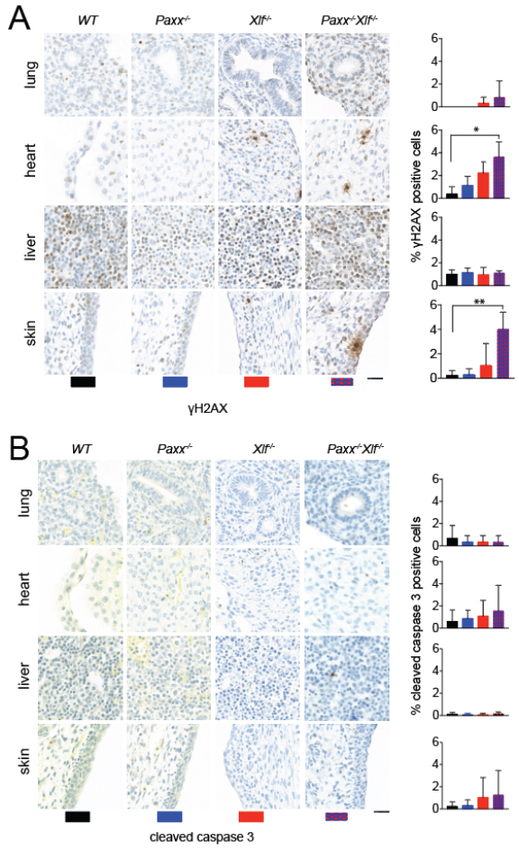 TS22: lung Present S8A lung Paxx-/-;Xlf-/- Expression was the same as in wild-type.