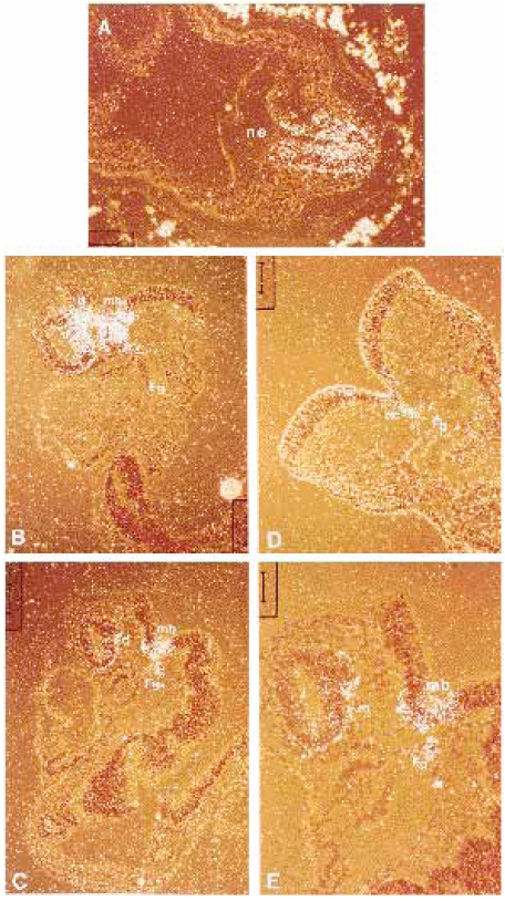 TS19: midbrain mantle layer Present 8B Expression extends from the mesencephalic flexure to the region of the future pons.