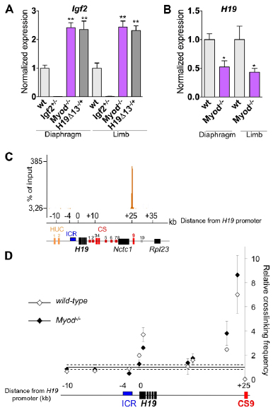 Reference: J:194471 Borensztein M, et al., Myod and H19-Igf2 locus interactions are required for diaphragm formation in the mouse. Development. 2013 Mar;140(6):1231-9
