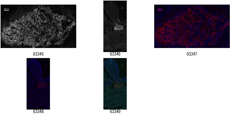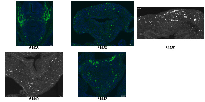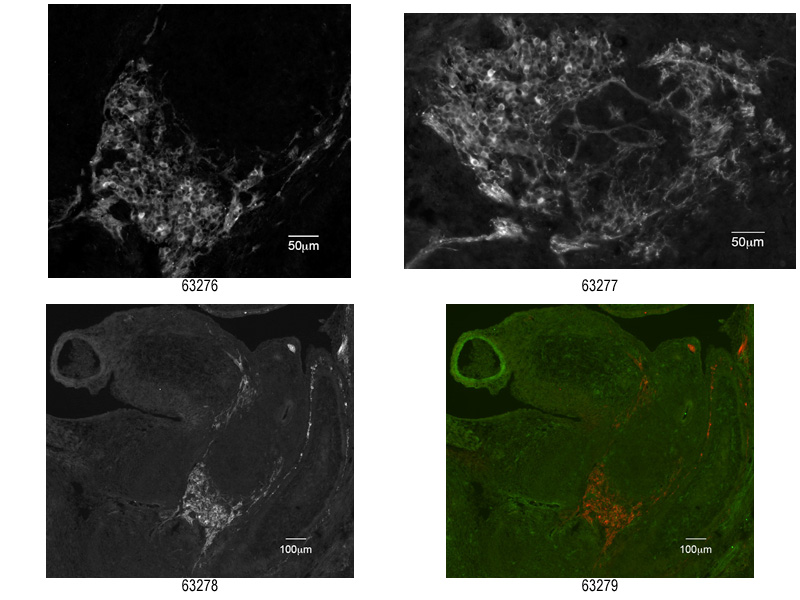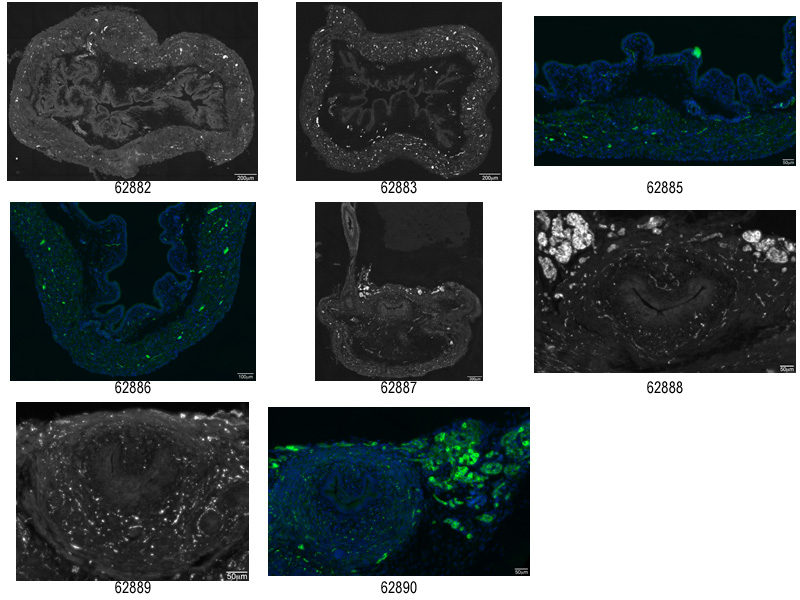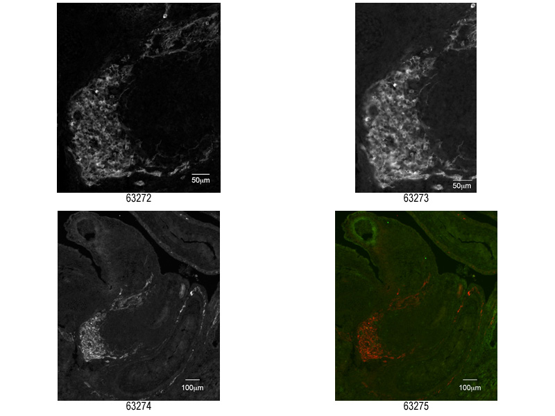 Note: This specimen was generated and annotated by the lab of Janet R. Keast, University of Melbourne. Double labeled: red = Nos1 (nNOS); green = Npy