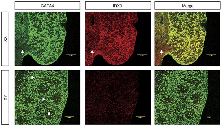 Note: Double labeled: green - Gata4; red - Irx3 (assay MGI:5908357).