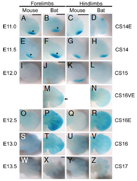 Reference: J:144057 Hockman D, et al., A second wave of Sonic hedgehog expression during the development of the bat limb. Proc Natl Acad Sci U S A. 2008 Nov 4;105(44):16982-7