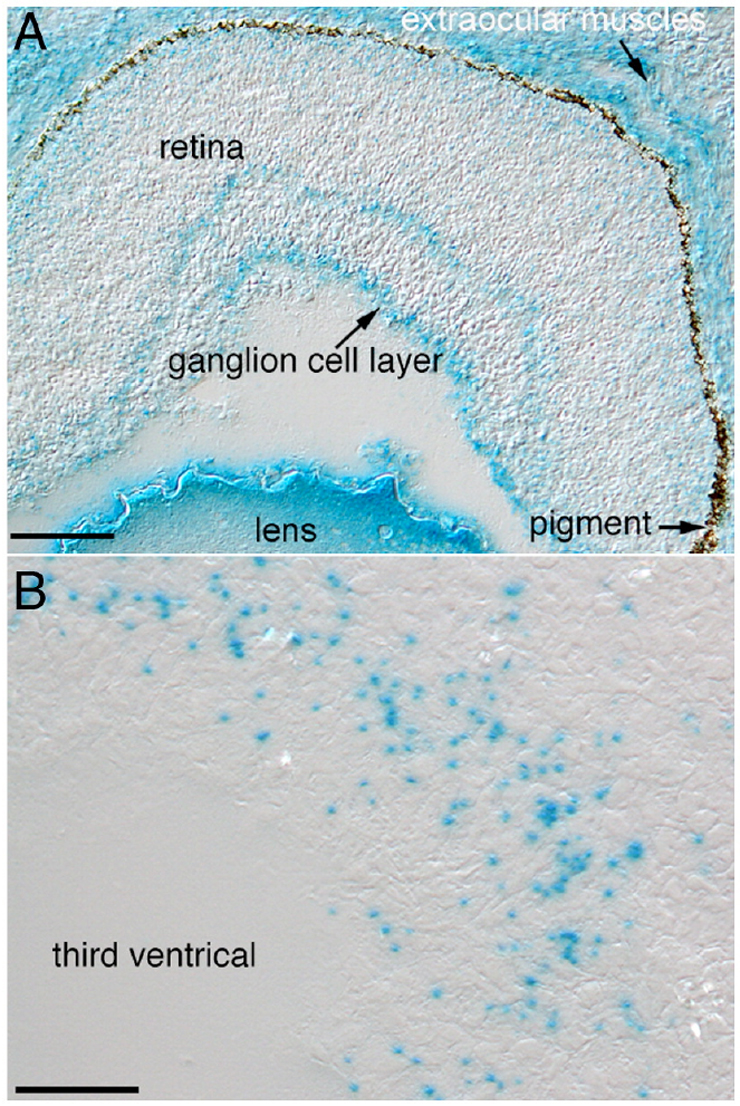 TS21: brain ventricular layer Present In the brain, expression primarily localized to meninges and ventricular zones.