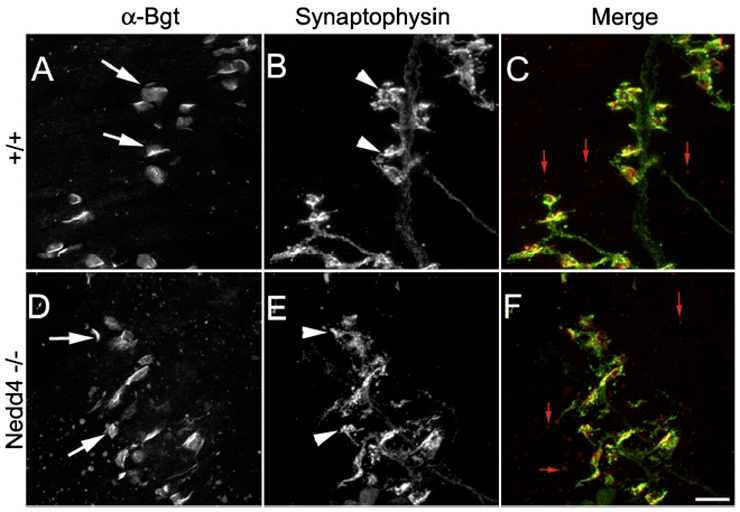 Note: Double labeled: green - synaptophysin (Syp); red - alpha-bungarotoxin.