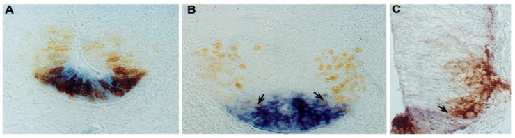 Note: Double labeled: brown - Foxa2; blue - Shh (assay MGI:6202039).