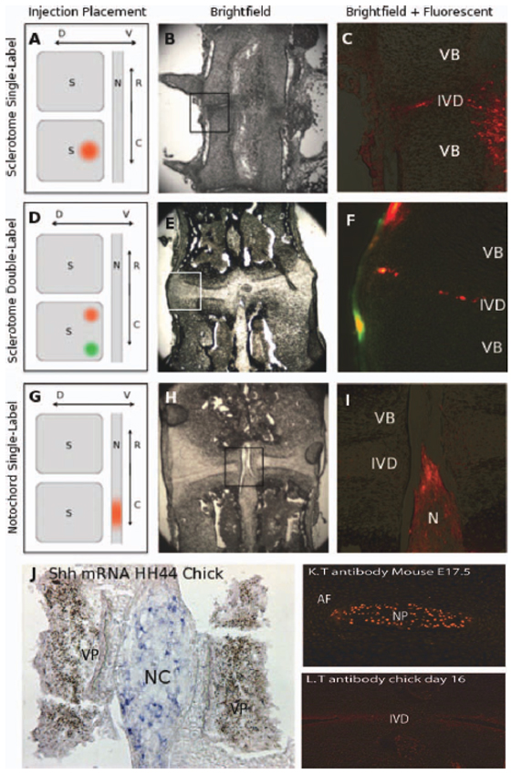 Reference: J:181635 Bruggeman BJ, et al., Avian intervertebral disc arises from rostral sclerotome and lacks a nucleus pulposus: Implications for evolution of the vertebrate disc. Dev Dyn. 2012 Apr;241(4):675-83