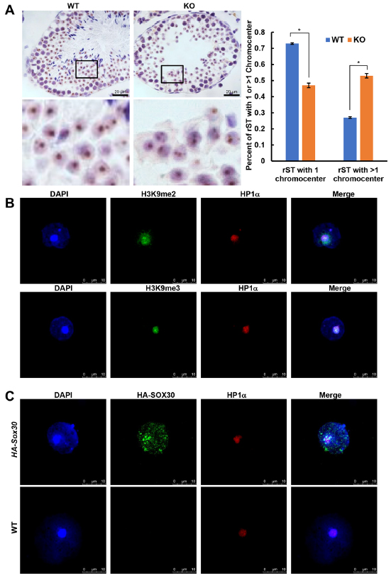 TS28: testis Present Regionally restricted 4A KO Author state that the percentage of round spermatids containing more than one chromocenter was significantly increased in knockout mice compared with wild-type littermates.