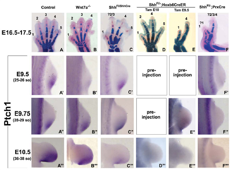 embryonic day 9.5; Shhtm2Amc/Shhtm1Chg, Tg(Prrx1-cre)1Cjt/0