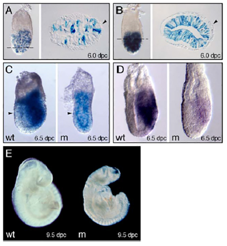 embryonic day 6.5; Meox2tm1(cre)Sor/Meox2+, Nodaltm1Rob/Nodaltm5Rob