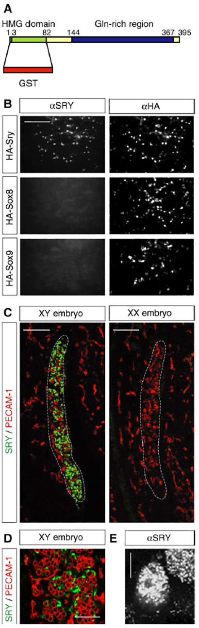 Note: Double labeled: red - Pecam1; green - Sry (assay MGI:6356021).