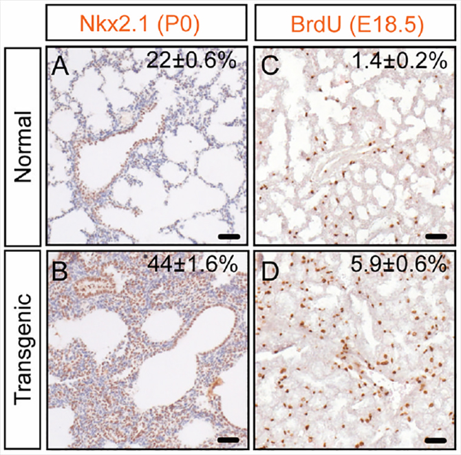 Reference: J:128019 Lu Y, et al., Transgenic over-expression of the microRNA miR-17-92 cluster promotes proliferation and inhibits differentiation of lung epithelial progenitor cells. Dev Biol. 2007 Oct 15;310(2):442-53