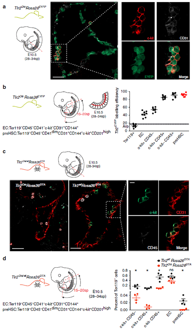 embryonic day 10.5; Gt(ROSA)26Sortm1(EYFP)Cos/Gt(ROSA)26Sor+, Tlr2tm1(cre)Dfil/Tlr2+