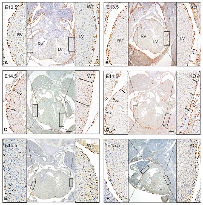 TS22: ventricle cardiac muscle Present 8D Fewer epicardium-derived cells were present compared to the wild-type.