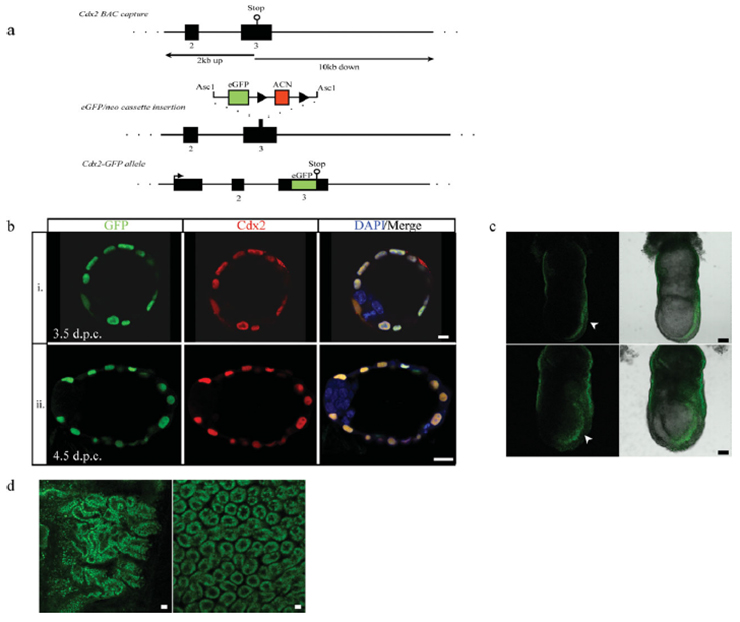 Specimen c bottom right: embryonic day 7.5; Cdx2tm1Yxz/Cdx2+ (more )