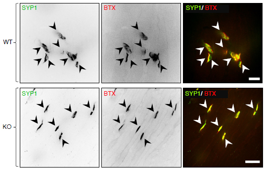 Note: Double labeled with alpha-Bungarotoxin (red).