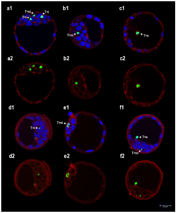 Note: Also TUNEL labeled (green) and Hoechst stained (blue).