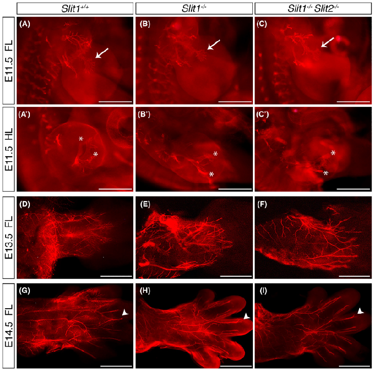 TS19: limb nerve Present Regionally restricted 3C' Expression not different between Slit1+/+, Slit1-/- and Slit1-/-Slit2-/- embryos.