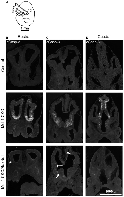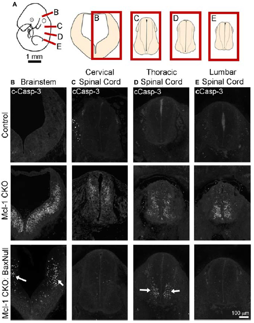 embryonic day 11.0; Baxtm1Sjk/Baxtm1Sjk, Mcl1tm3Sjk/Mcl1tm3Sjk, Tg(Nes-cre)2472Pick/0