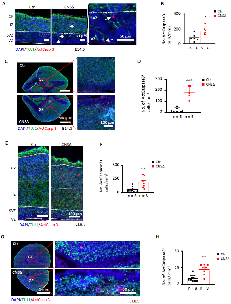 Note: Conditional mutant. Double labeled: green - Tubb3; red - Casp3 (assay MGI:7260272).