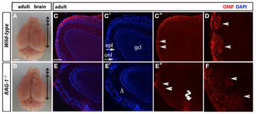 Note: Double labeled: red - Omp; green - Tubb3 (assay MGI:7266499).