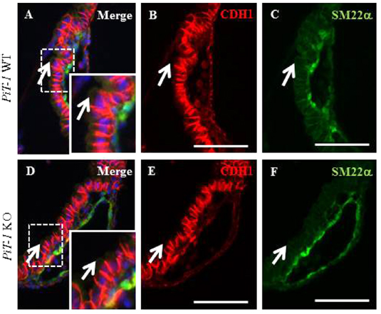 Note: Double labeled: red - Cdh1; green - SM22a (Tagln assay MGI:7277747).