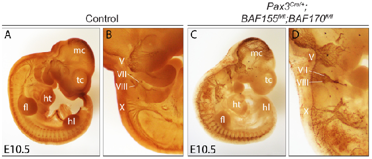 Specimen S5C,D: embryonic day 10.5; Smarcc1tm2.1Rhs/Smarcc1tm2.1Rhs, Smarcc2tm1.1Stoy/Smarcc2tm1.1Stoy, Pax3tm1(cre)Joe/Pax3+ (more )